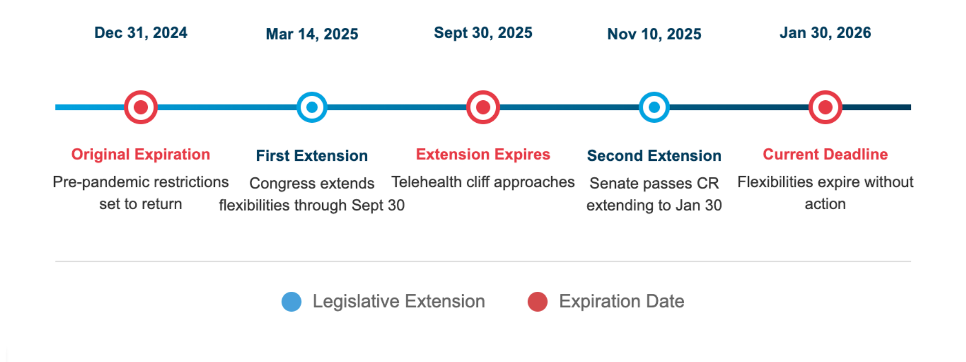 Bipartisan legislation offers a potential path forward: the CONNECT for Health Act (S.1261, H.R. 4602) and the Telehealth Modernization Act of 2025 (H.R. 5081) would decouple telehealth from budget negotiations and establish permanent coverage. Until such legislation passes, healthcare organizations must balance the demand for telehealth services against the reality of unpredictable policy timelines.